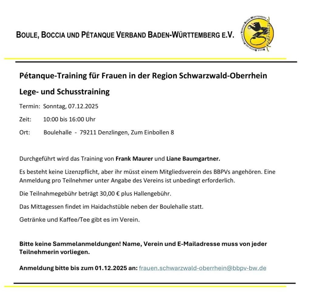 29.10.2025 | TV Brötzingen Boule 19. Freizeitturnier | Pforzheim |