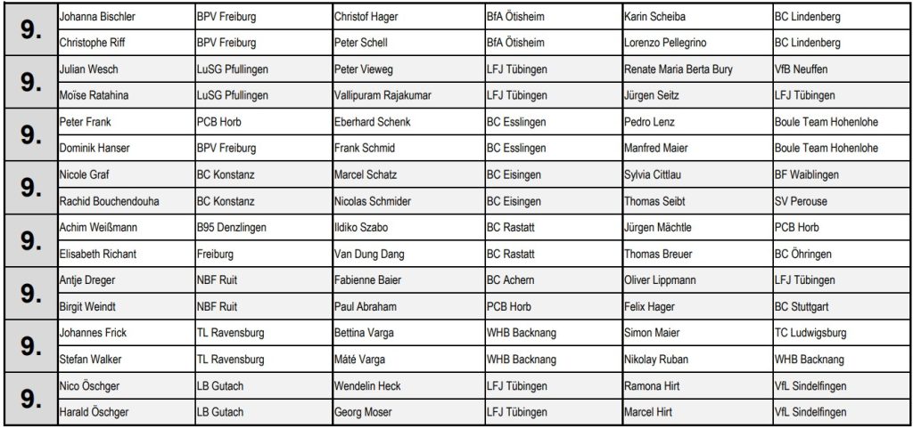 Im C-Turnier gewannen Femitia Amdrianjanahang (TL Ravensburg) und Harilola Ranaivamanana (TG Laudenbach) mit 13:8 gegen Benjamin Ferner (Waldheim Backnang) und Sébastien Tromeur (TG Laudenbach).