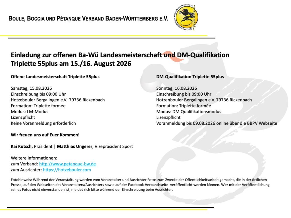 Einladung zur LM und DM-Quali Triplette 55+ am 15./16.08. bei den Hotzebouler Bergalingen